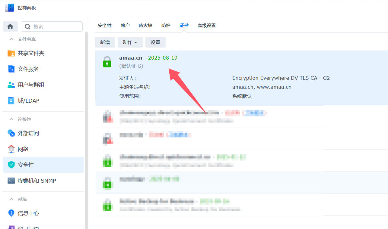 NAS小站 店铺专用 本店穿透证书到期,更新步骤 本店穿透证书到期,更新步骤 发布: 1 11 月, 2024 证书下载地址(下载后解压再更新)20002094_amaa.cn_other.zip 证书已更新到2026年8月19日 证书下载地址(下载后解压再更新)20002094_amaa.cn_other.zip 证书已更新到2026年8月19日