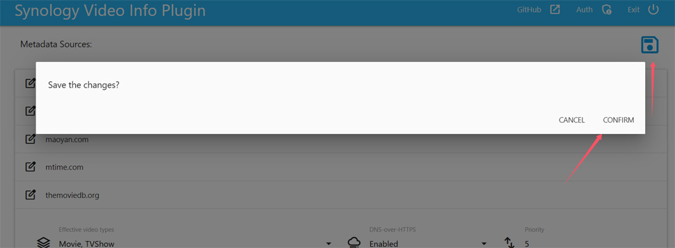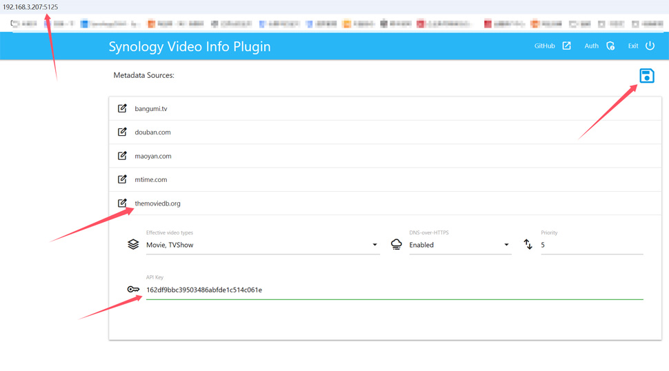 添加完成后 浏览器打开群晖IP+端口5125,填写api保存退出就可以了